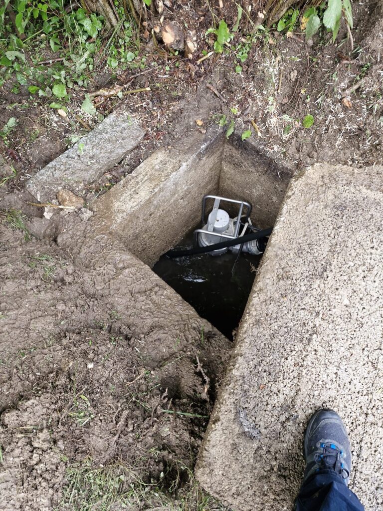 Durch das Oberflächenwasser wurde ein Kanal verlegt, was zu einer Überflutung führte. Der betroffene Schacht wurde von den Einsatzkräften ausgepumpt, im Anschluss wurde versucht, den Kanal mit einer sogenannten „Kanalratte“ wieder freizubekommen.