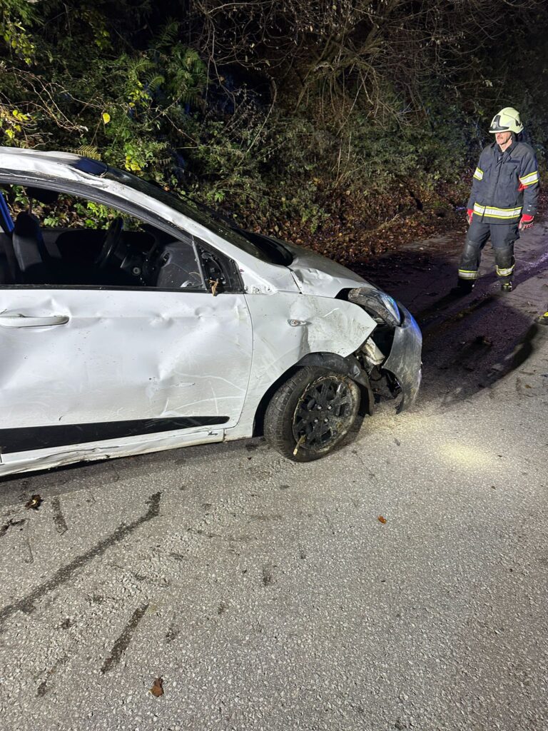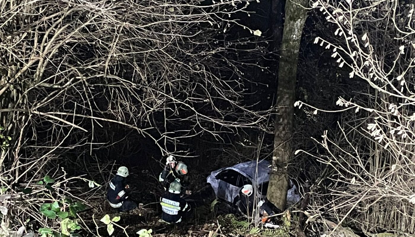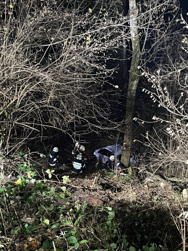 Am Samstagnachmittag wurden wir zu einem Verkehrsunfall alarmiert. Ein Pkw war aus bisher unbekannter Ursache von der Fahrbahn abgekommen und rund 40 Meter in den Wald gestürzt.
